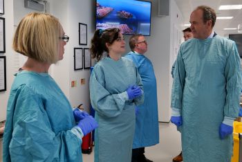 During the visit, Mr Blackman explored the BSMS anatomy suite, learning how students combine traditional dissection with innovative digital tools such as ultrasound, 3D imaging and interactive virtual reality resources. He was given a guided tour of the facilities and met staff and final year medical student Enya Costin.